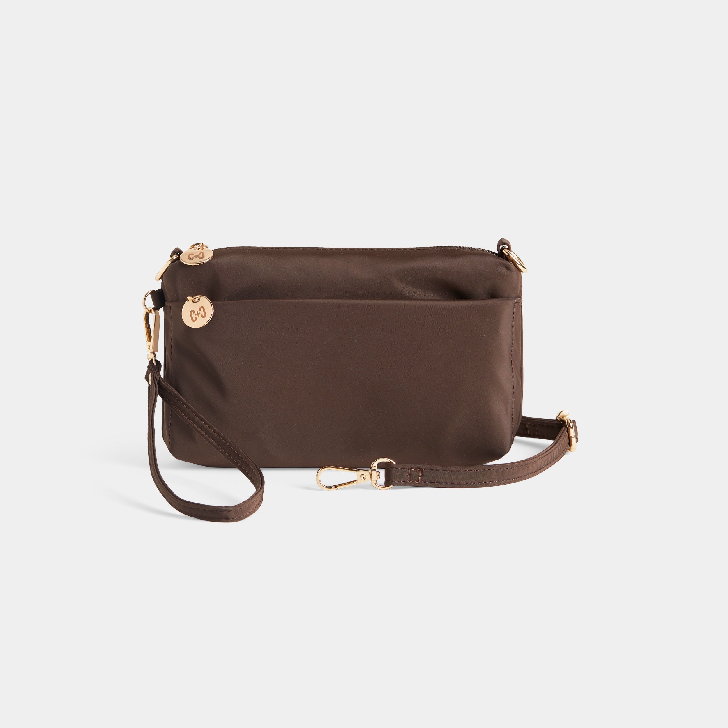 Small but mighty! Our Little Stash Bags are the perfect handbag helper. Made with storage compartments on the front and back, the zippered interior holds cash, keys, makeup, and so much more. Perfect for travel. Metal hardware. Dimensions: 8.5"W x 6"H x 5"D.