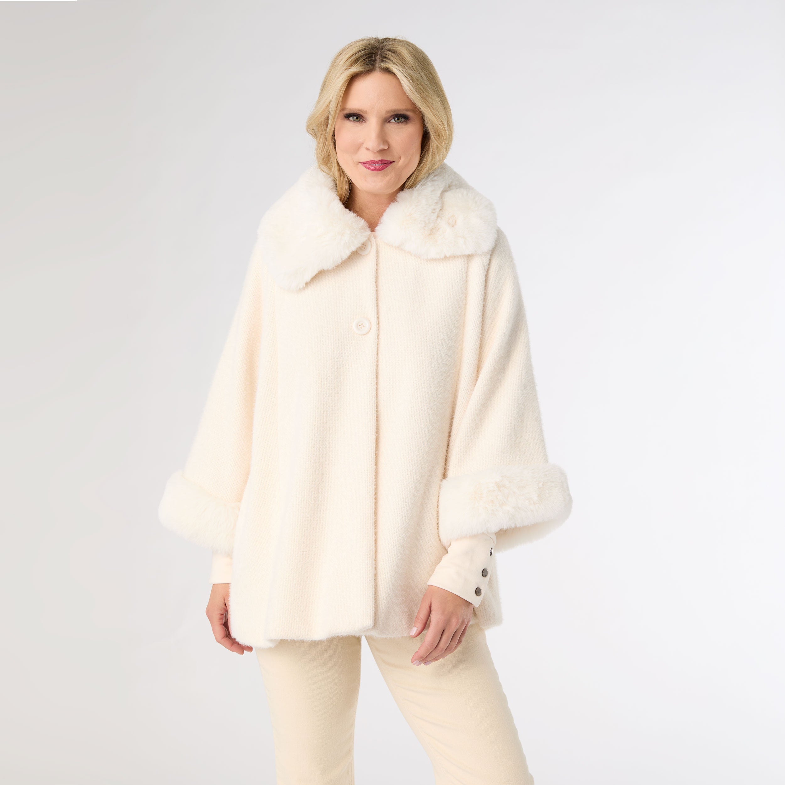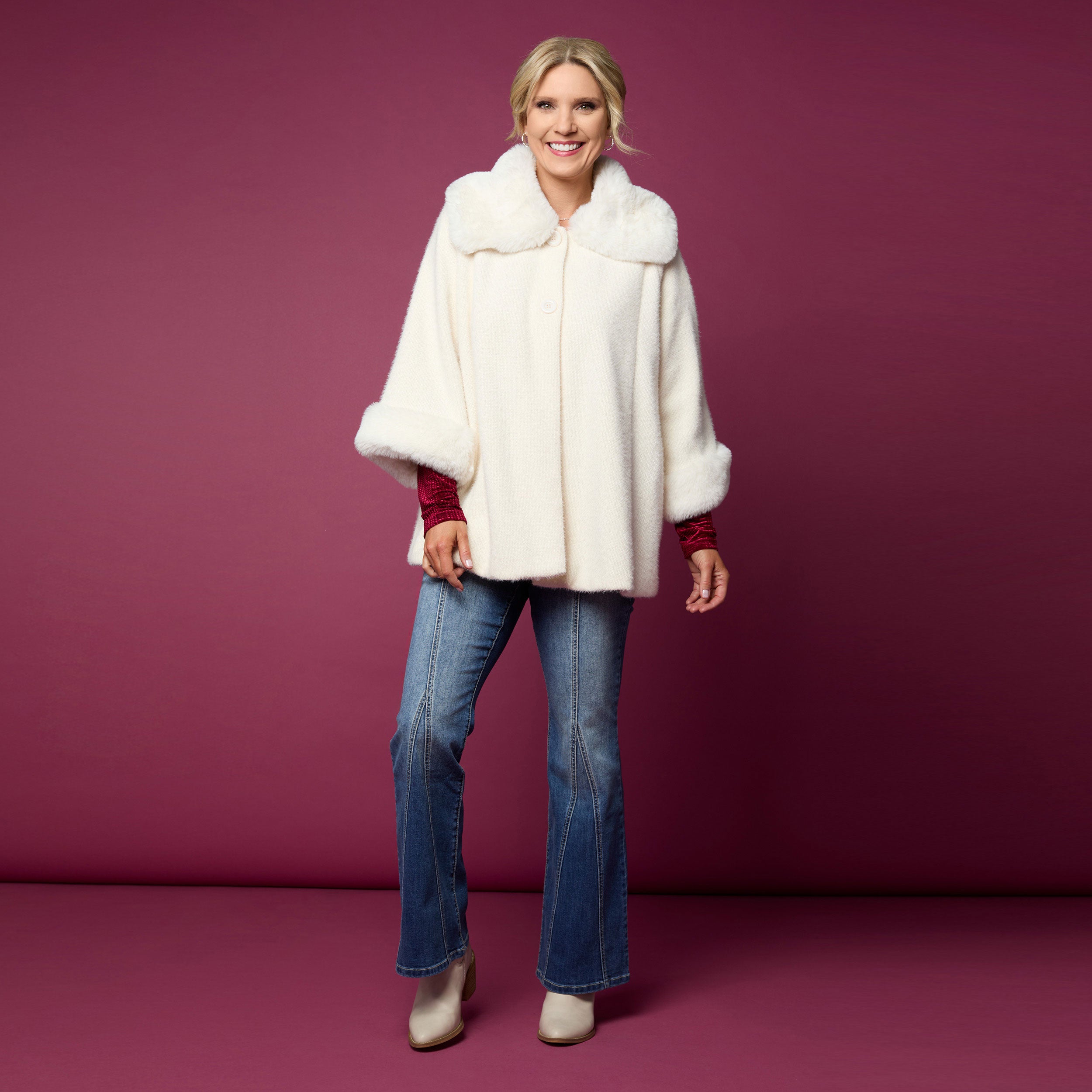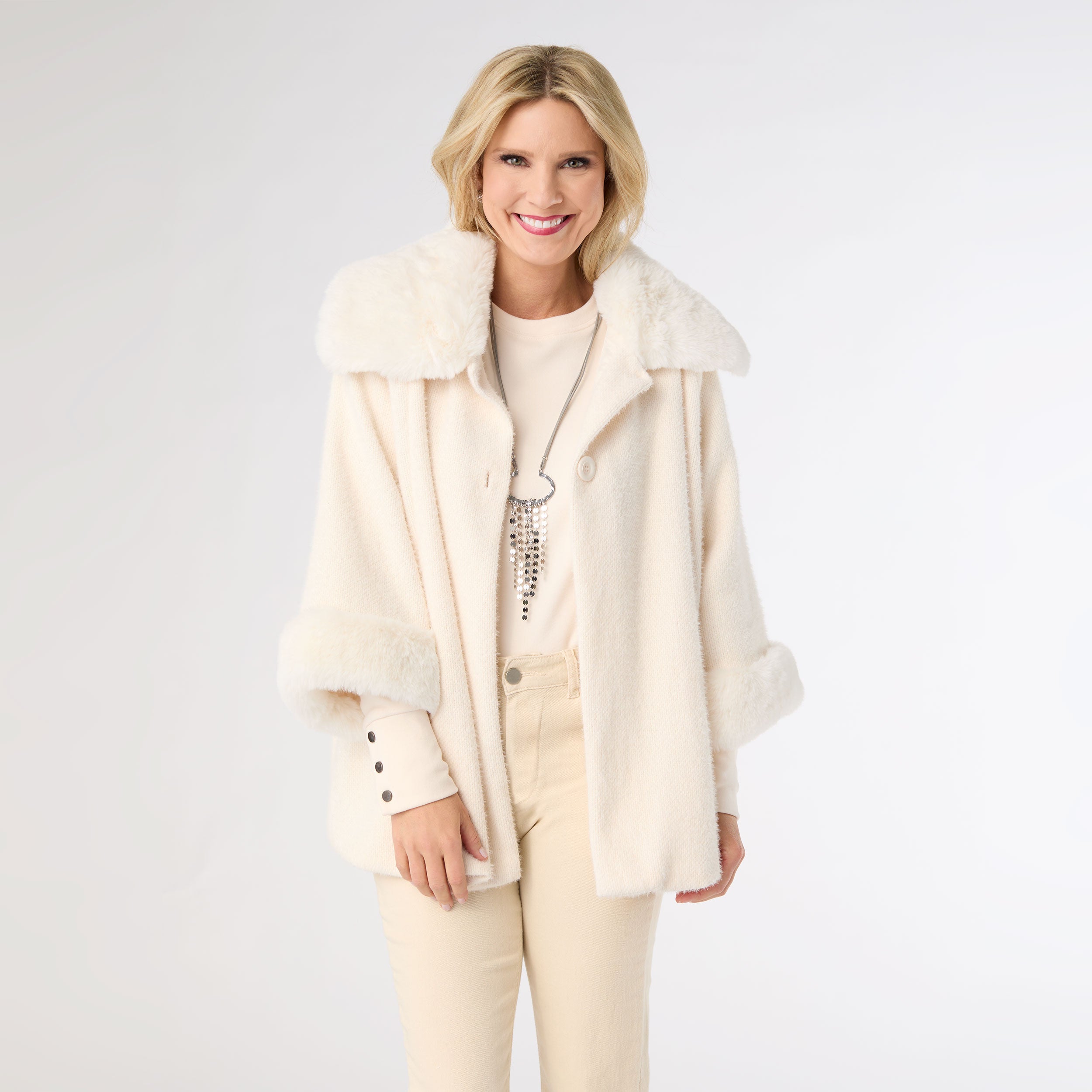Bundle up in our Janara 3/4 Sleeve Button Wrap, the ultimate winter fashion accessory. With its cozy faux fur trim and stylish design, you'll turn heads wherever you go. Whether you're running errands or meeting friends for coffee, this wrap will keep you warm and looking fabulous.