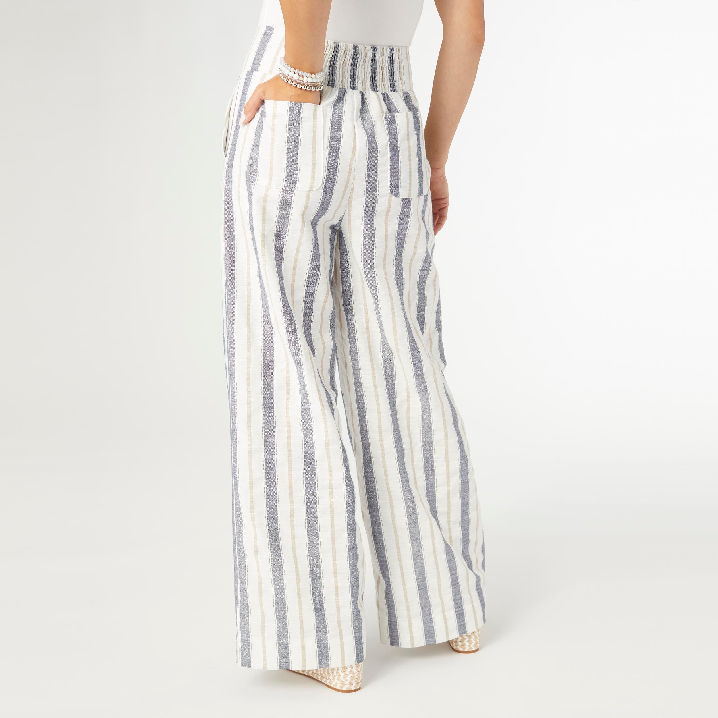Elevate your summer style with our Vinca Wide Leg Striped Pants! The flowy silhouette and eye-catching stripes make these pants a must-have for those sunny days. Pair them with a simple tank top for a casual look, or dress them up with a cute crop top for a night out.