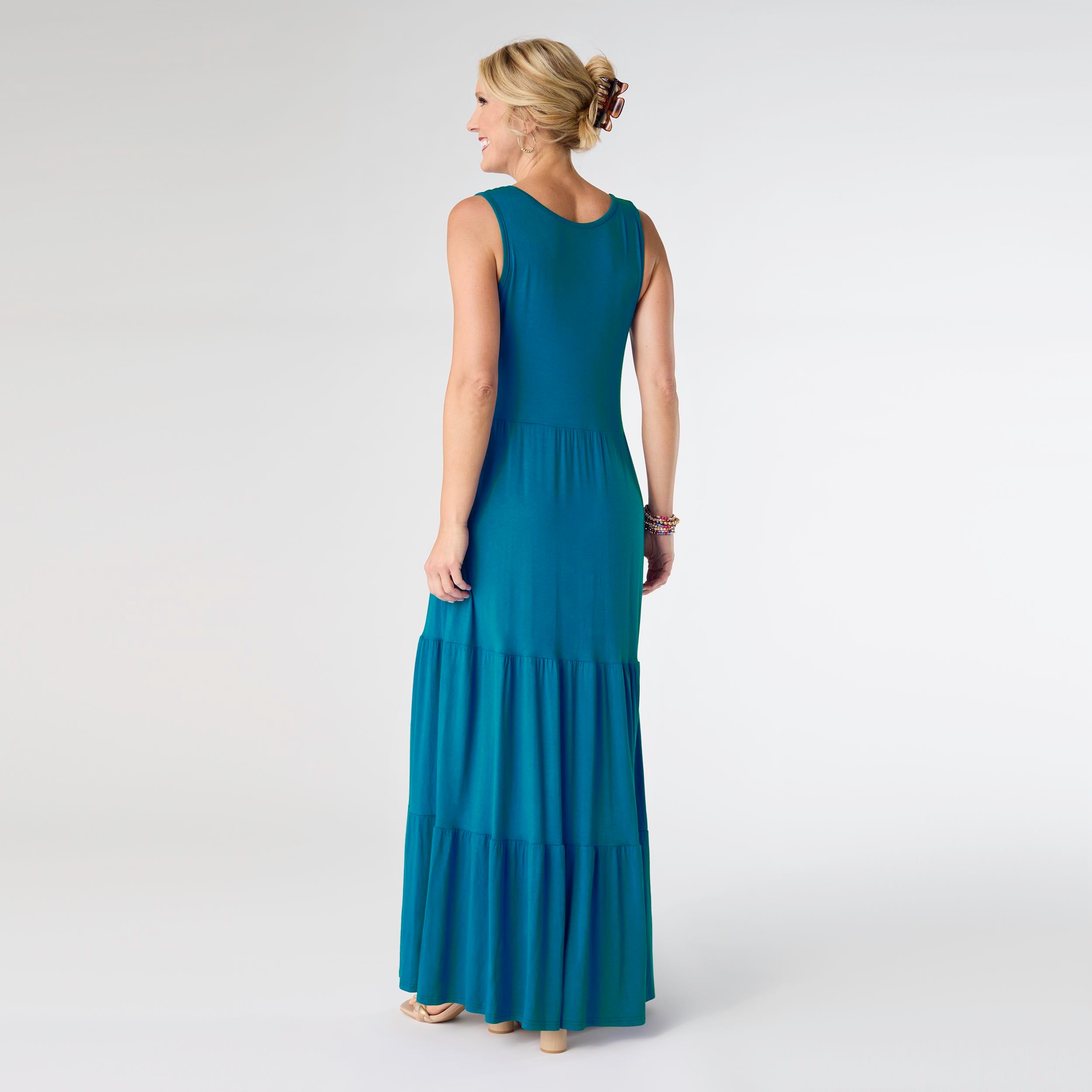 Elevate your style with our Janie Solid Tiered Maxi Dress, a chic and comfortable sleeveless piece that you'll reach for time and time again. Whether you're running errands or enjoying a day out with friends, this dress is the perfect essential for any occasion.