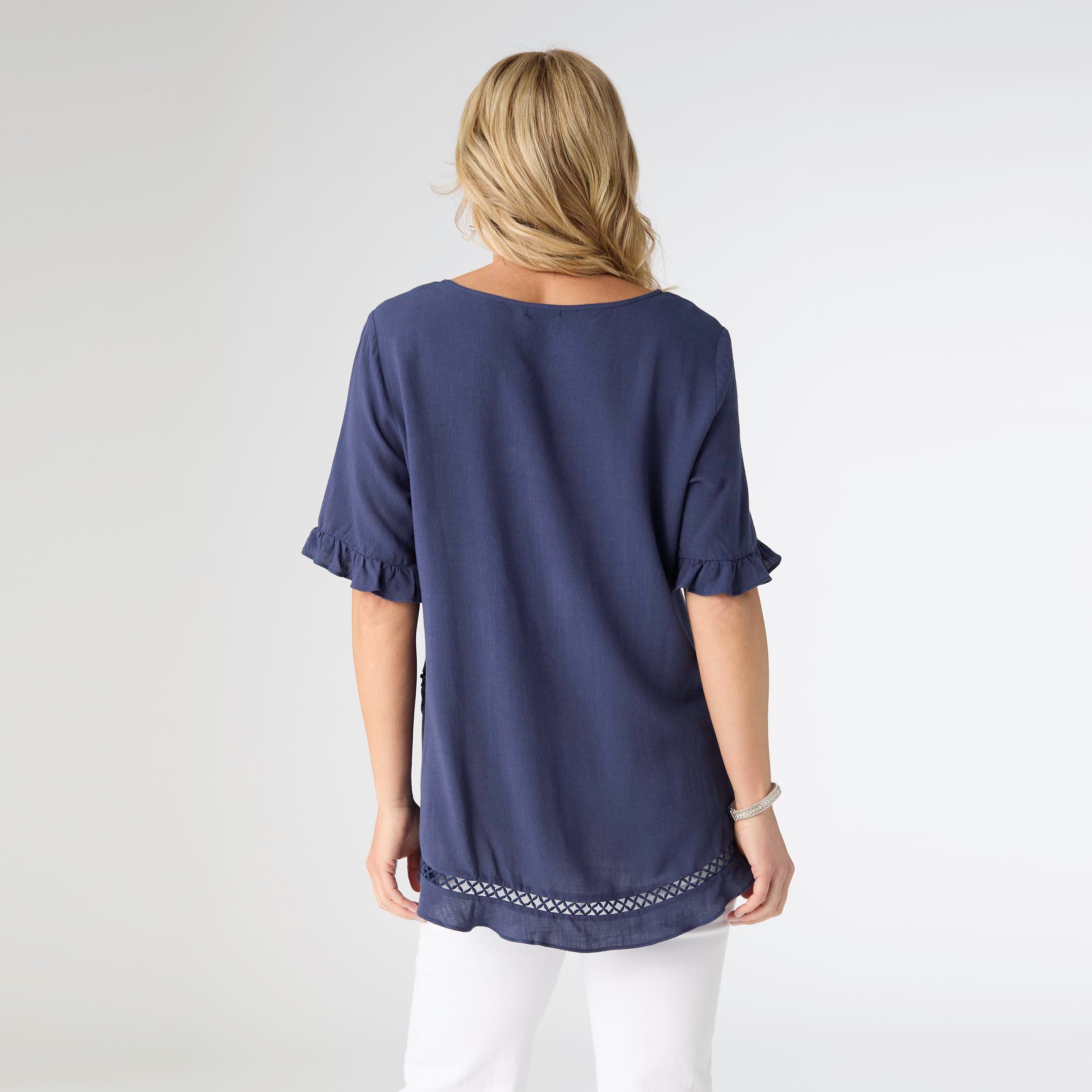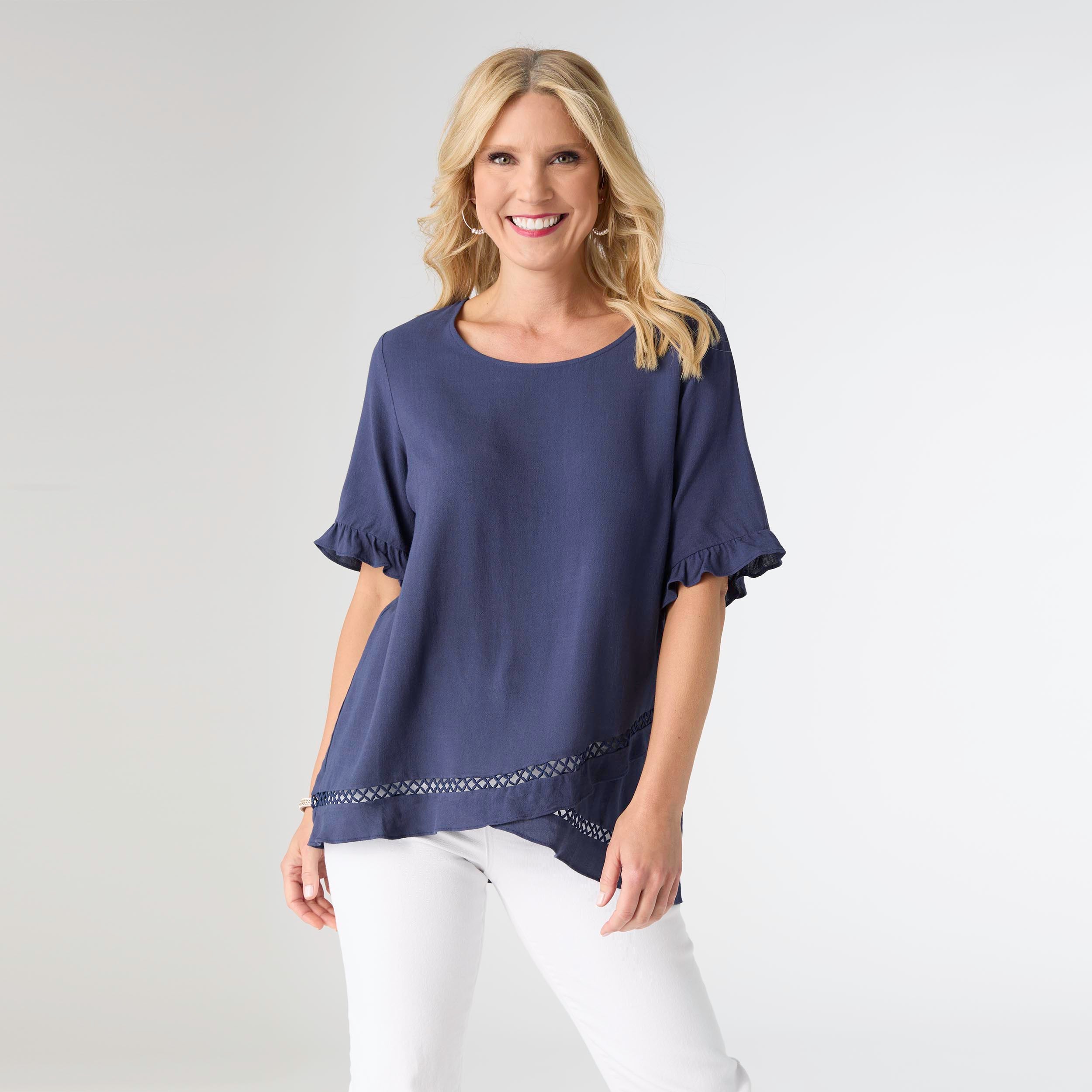 Get ready to turn heads in our Layla Short Sleeve Crossover Ruffle Top! With flirty ruffle short sleeves and cutout details along the bottom, this top is perfect for adding a touch of fun to your look. Pair it with your favorite jeans for a stylish outfit that's sure to impress.