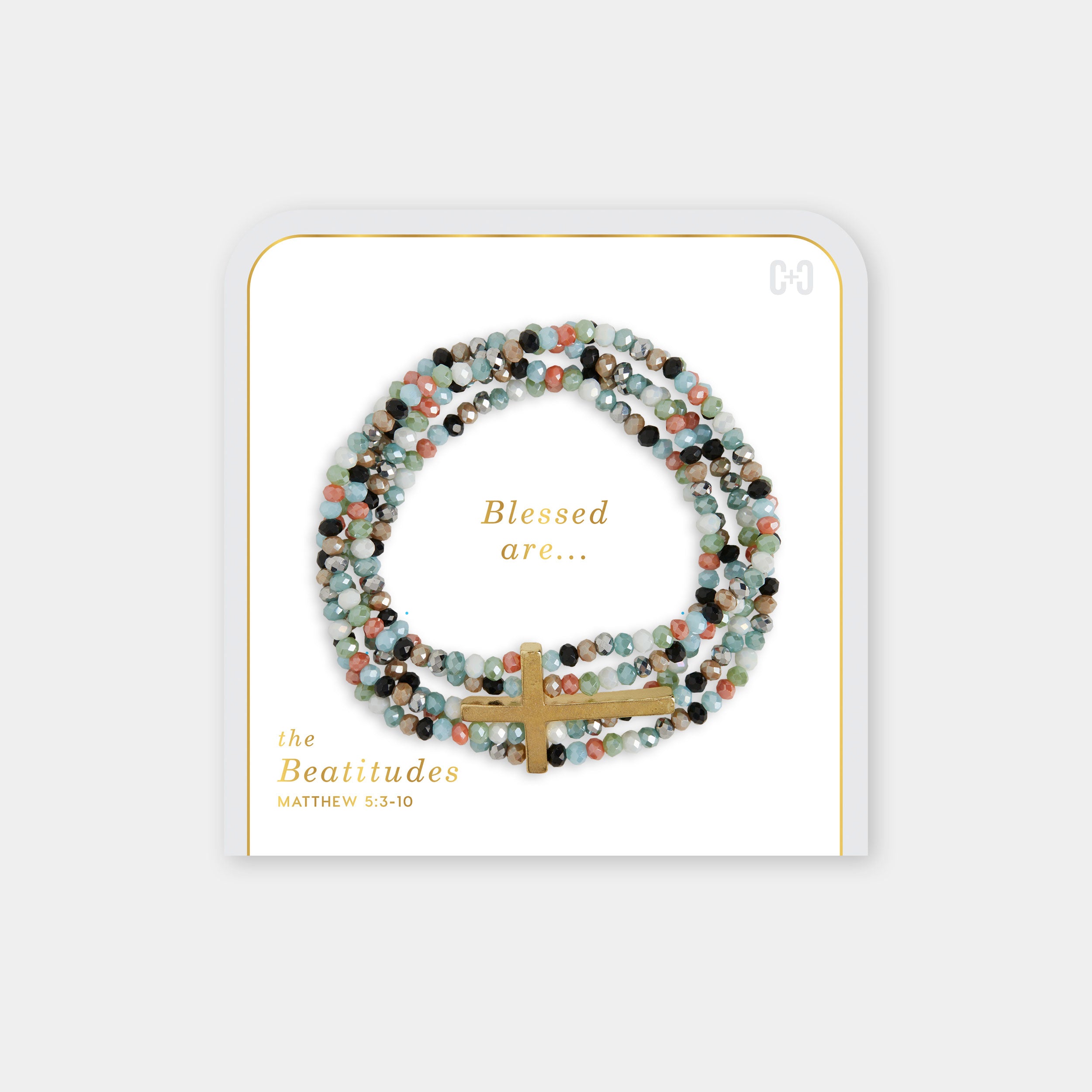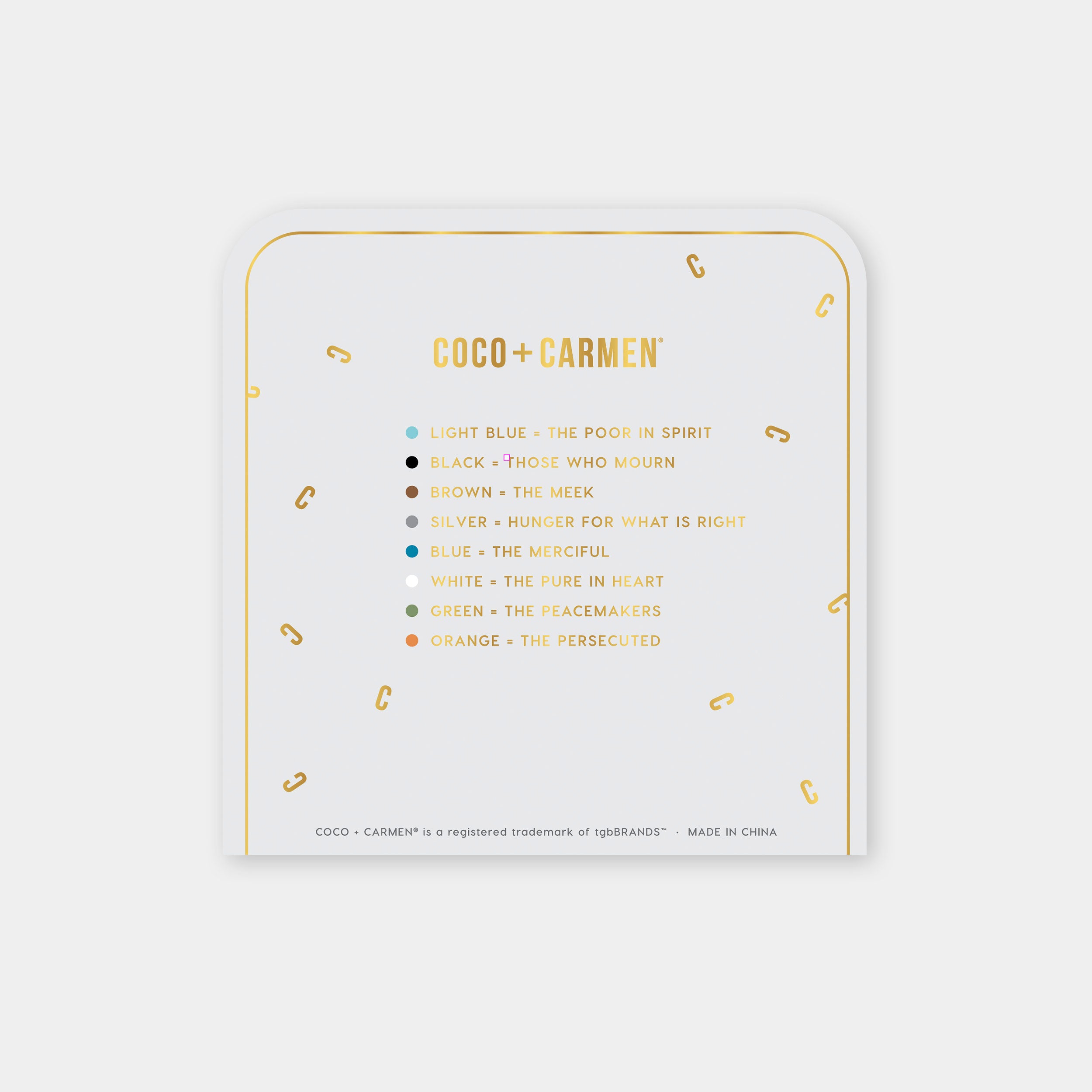 Beautifully carded and ready to gift! Style with meaning -- the eight bracelet colors represent the 8 beatitude reflections. Dimensions: Stretch (up to 8").