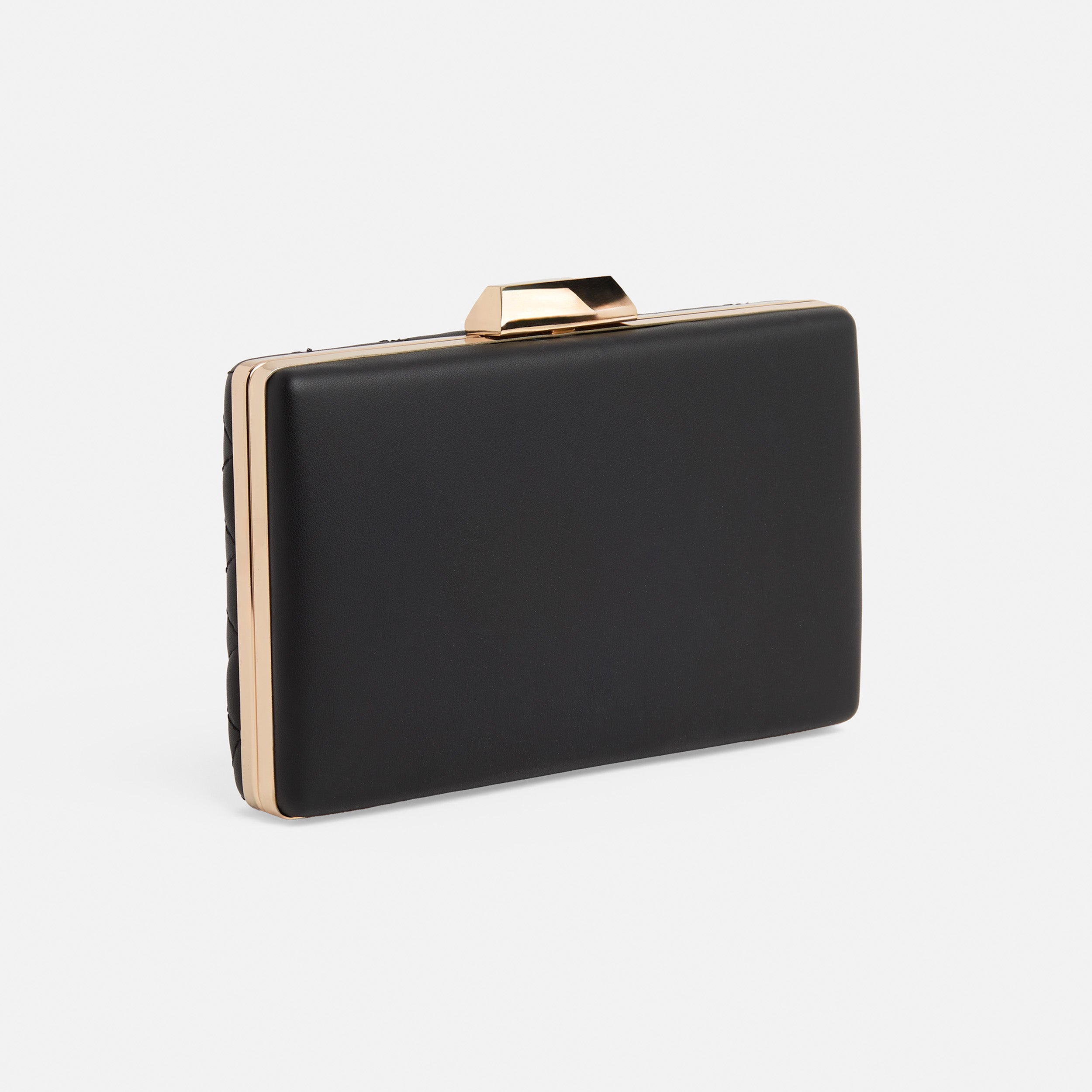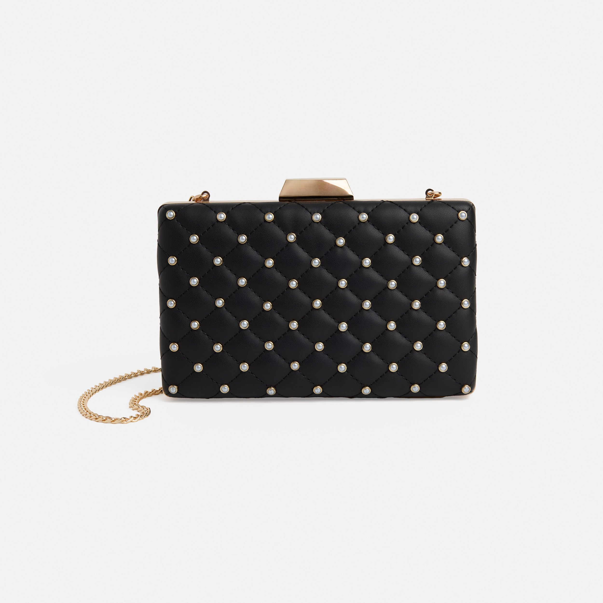 Perfect for the holiday season, this clutch has a fabric lining and detachable chain-link strap. Dimensions: 7.75"W x 4.75"H x 1.25"D.