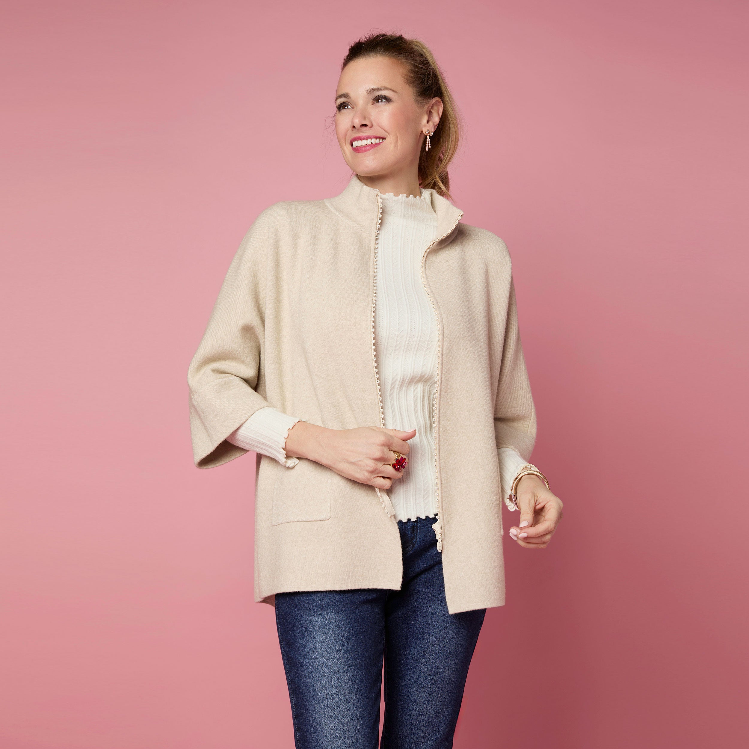 Elevate your winter wardrobe with our Heavenly-Luxe Rhinestone Zip Front Cardigan with Pockets. Made with ultra-soft spun yarn fabric. We love the three-quarter length sleeves, rhinestone zipper detail and front pockets.