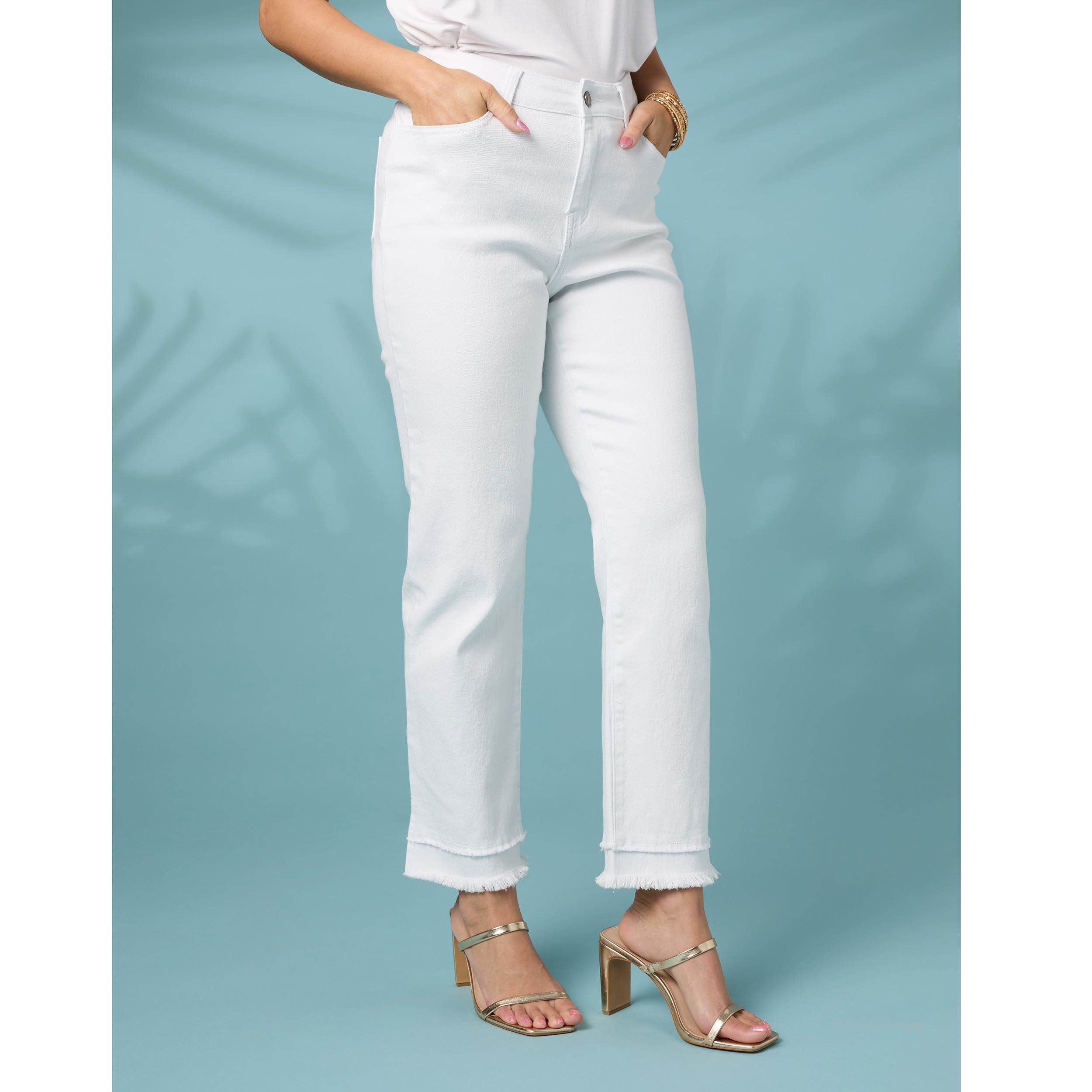 Introducing our Mary Straight Ankle with Double Fringe Pant - the perfect addition to your wardrobe! With its stylish straight ankle cut and double fringe accent, these pants will make you stand out from the crowd. Dress them up with a blouse and heels for a night out, or keep it casual with a simple tee and sneakers for a laid-back look.