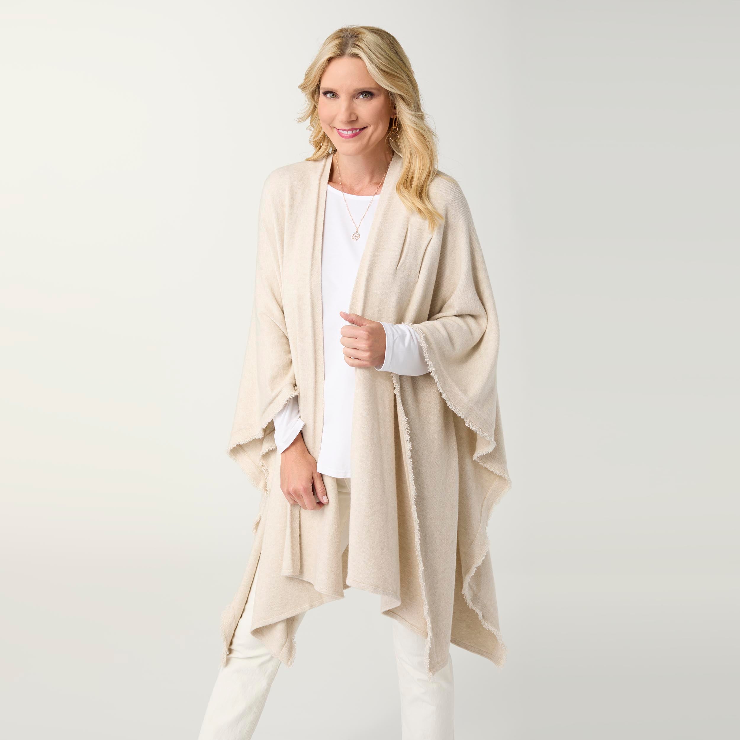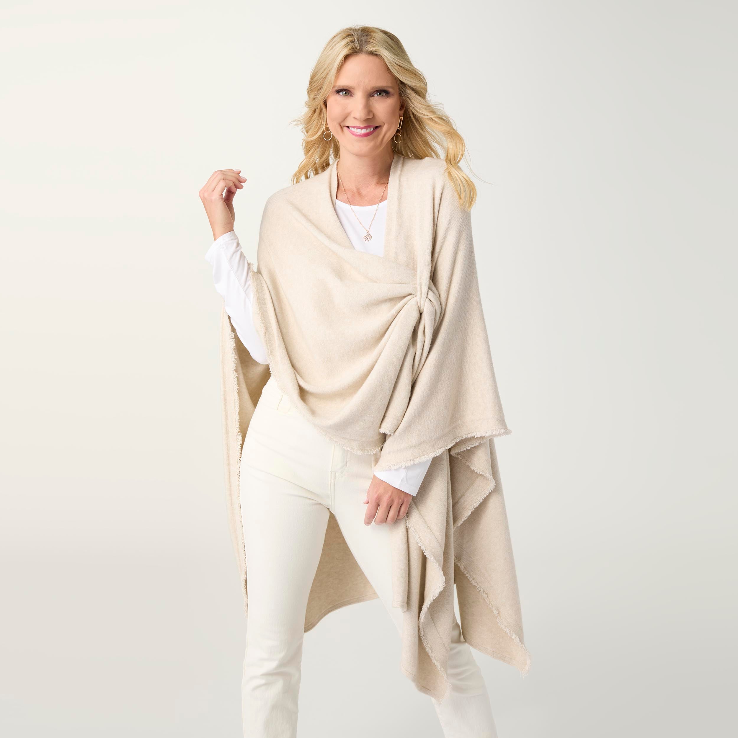Discover the ultimate in comfort and style with the Heavenly-Luxe Pull Thru Wrap with Fringe. Its luxuriously soft fabric is designed to provide the utmost comfort, making it the epitome of cozy. Designed in one size, this chic accessory can be effortlessly pulled through for a trendy layered effect. The playful fringe detailing brings a sense of fun and personality to this everyday luxury piece. Treat yourself to this irresistibly soft and chic wrap, perfect for embracing true comfort and indulgence.