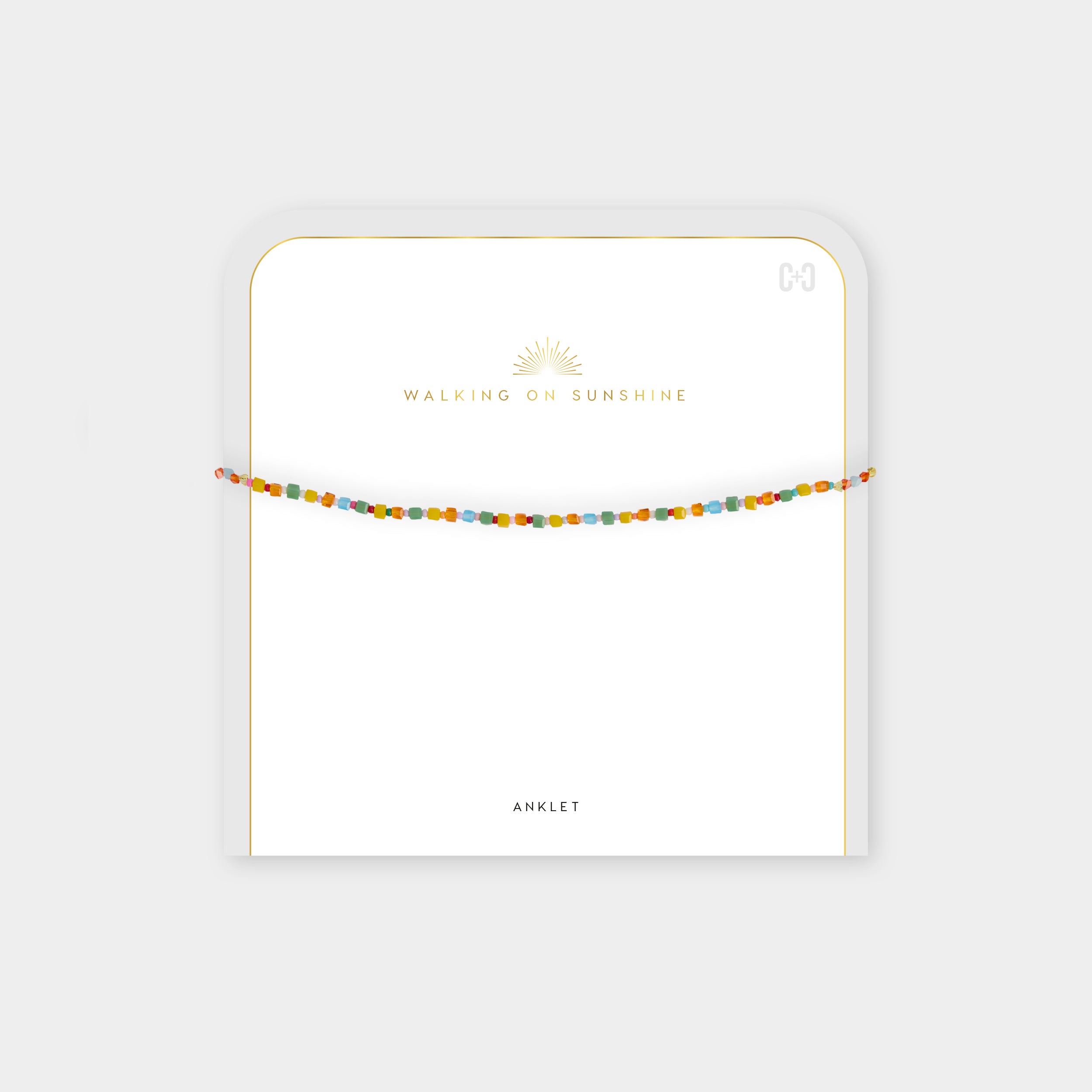Add a touch of sunshine to your look with this stunning anklet. The delicate design and shimmering finish make it the perfect accessory for beach days, music festivals, or simply running errands. Treat yourself to a little piece of sunshine today!
