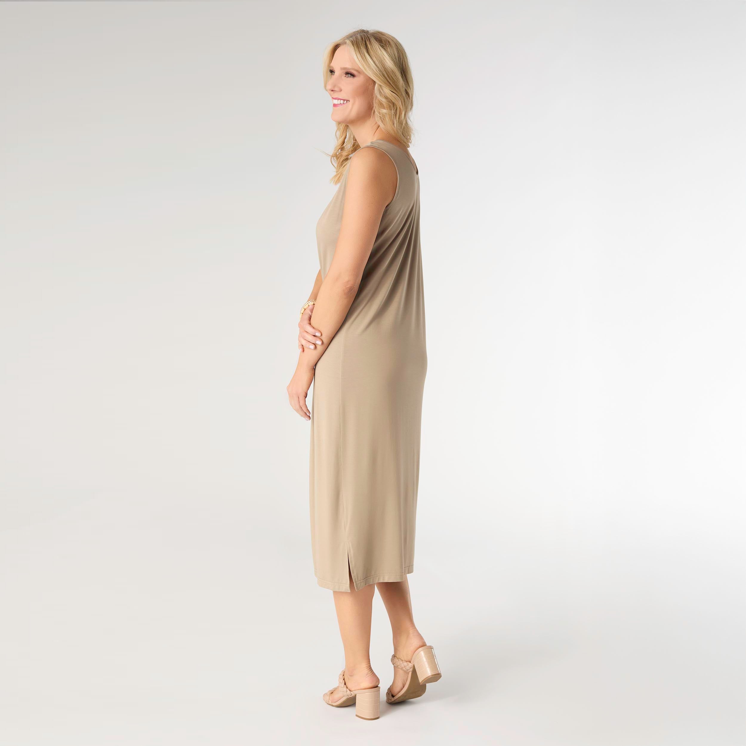 The Soft Landing Sleeveless Dress is the perfect piece of effortless travel wear for your next adventure. Made from lightweight, soft fabric, this dress is not only flattering but also incredibly comfortable. Whether you're exploring a new city or lounging by the beach, this versatile piece will keep you looking and feeling great.