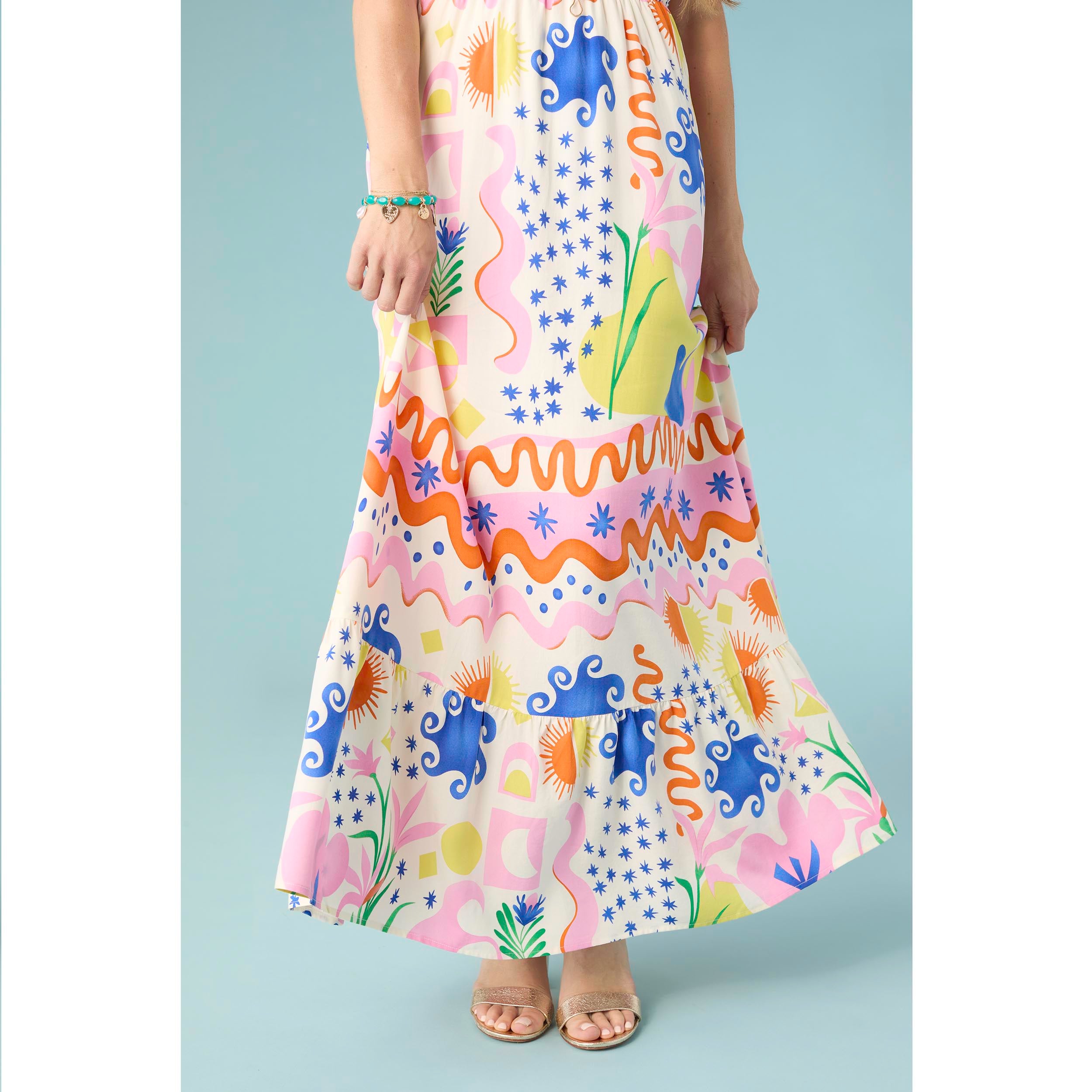 Elevate your wardrobe with our Picasso Short Sleeve Maxi Dress. Whether you're headed to a summer wedding or a casual weekend brunch, this dress is sure to impress. The breathable fabric and flowy design make it a dream to wear all day long. Add a touch of artistic flair to your look with this stunning maxi dress.