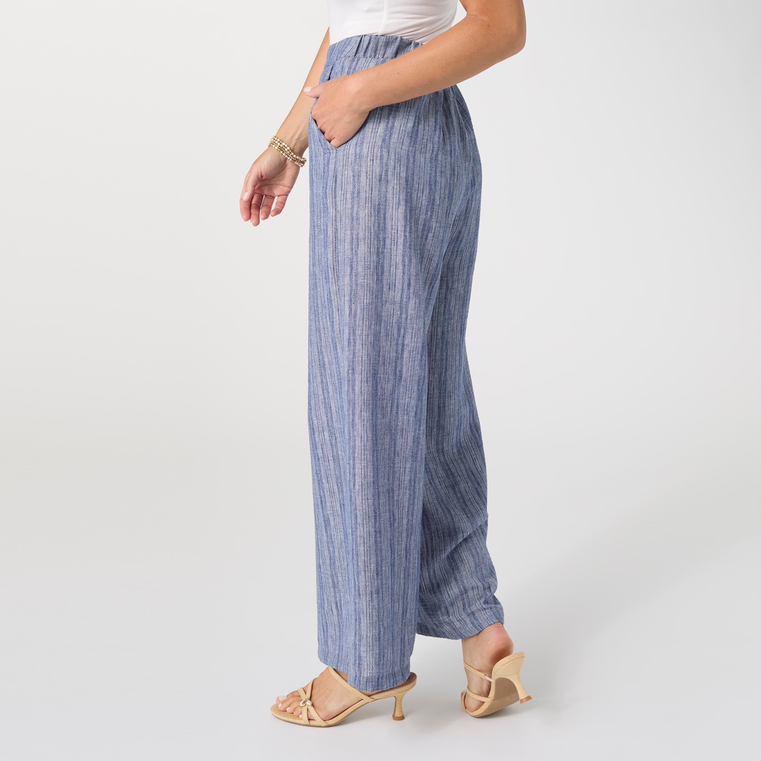 Effortless comfort and everyday polish define the Andrea Textured Pant with Pockets. Designed with a relaxed, straight-leg silhouette, this pant features a subtle textured fabric that adds visual interest while remaining lightweight and breathable. An easy pull-on waistband ensures all-day comfort, while functional pockets add practical appeal. Versatile and easy to style, it pairs beautifully with tanks, tees, or lightweight tops for casual or elevated looks.