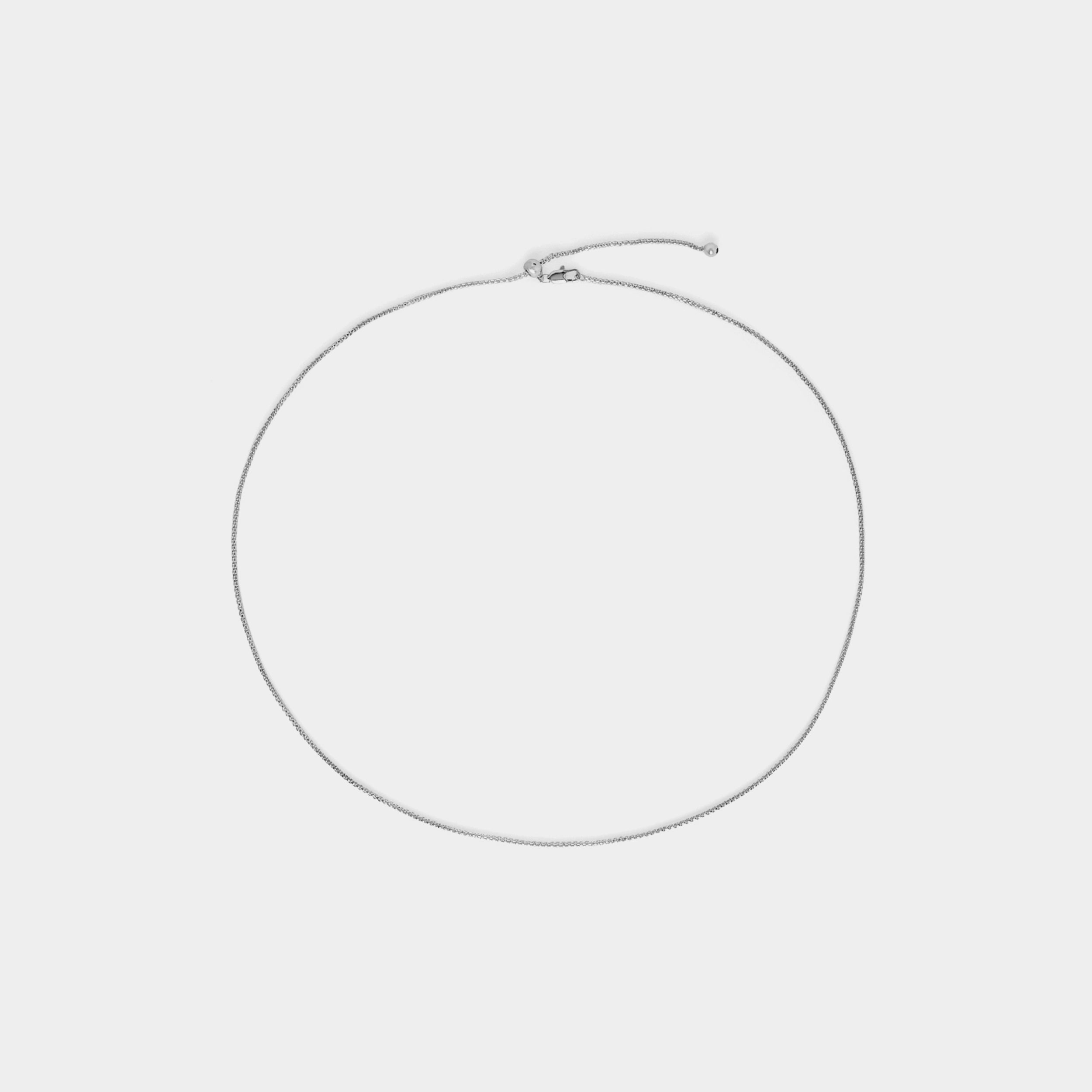 Customizable snake chain necklace for displaying Whispers charms. 15” – 22” adjustable closure. Can also be worn as a choker. Packaged on a metallic foil card. Makes a great gift. Material: Rhodium Plated.